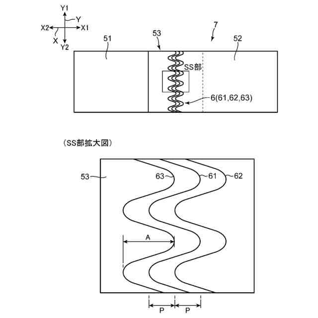 前記重複部分に形成され、所定方向に延びるとともに前記所定方向と直交する直交方向に所定の振幅を有する正弦波状の波形に沿った形状の複数の溶接部と、を備え、