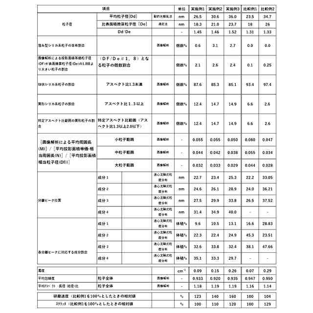 [2]動的光散乱法による平均粒子径(Dd)と比表面積換算粒子径(De)の比で表される異形度(Dd/De)が1.35~1.65の範囲内であること。