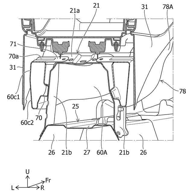 前記第1の窪み部の後方側に位置する前記流路部には、前記第1窪み部の後方側からさらに後方に向かうに従い、車幅方向長さが小さくなる幅狭部が設けられ、