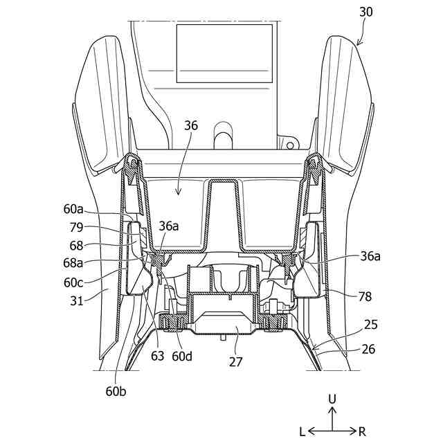 フロアコンソールの例えば上部における車幅方向中間部には、車両の各種装置を操作するための操作部、及び、物品を仮置きまたは収納可能な荷物収容部が設けられている。操作部には、例えば、シフトセレクタ、パーキングブレーキハンドル、及び、FPBスイッチ等が含まれる。荷物収容部には、例えば、収納ボックス及びドリンクホルダ等が含まれる。このようなフロアコンソールに流路部を設ける場合には、操作部及び荷物収容部を避けて、流路部を配置する必要がある。流路部を内部に配置するために、フロアコンソールは、所定の車幅方向長さを必要とする。