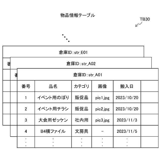 前記物品管理部は、前記倉庫に格納した物品の情報として、前記物品の画像を受け付け、前記物品の画像、及び、前記物品の画像から解析される1以上のキーワードの少なくともいずれかを、前記倉庫の識別情報に関連付ける、