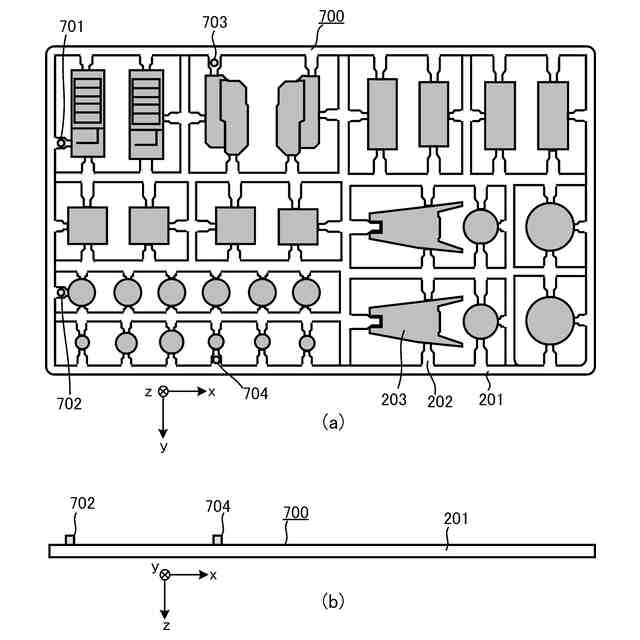 前記複数のパーツの少なくとも1つを取り囲むように形成される第1ランナーと、