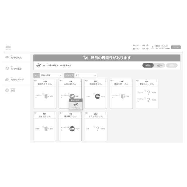 前記警告報知手段は、前記端末側送受信手段が異変報知指令情報を受信したとき、前記監視画面に転倒の発生を知らせる警告表示、異変者情報、転倒座標、対応中ボタン及び対応済ボタンを表示することを特徴とする。