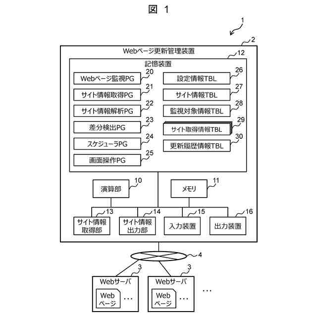 Webページの更新を管理するWebページ更新管理装置において、