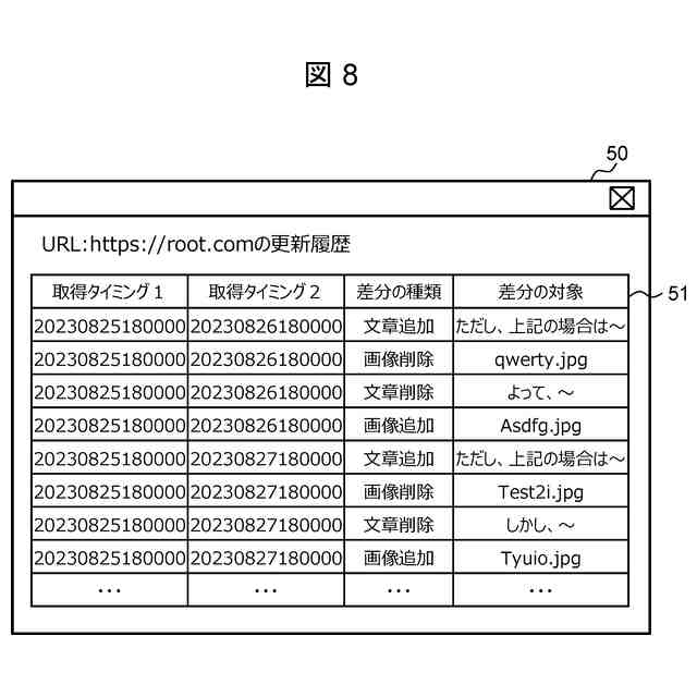 監視範囲内の指定された前記Webページについて、異なる2つのタイミングで前記情報取得部により取得された前記情報を比較して差分を検出する差分検出部と、