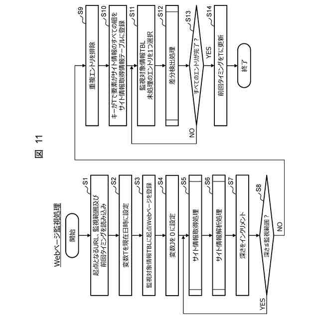 監視範囲内の指定された前記Webページについて、異なる2つのタイミングで取得した前記情報を比較して差分を検出する第2のステップと、