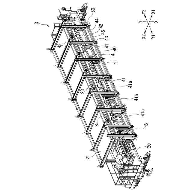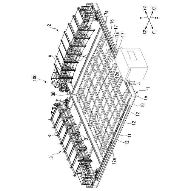 従来から、鉄筋が配置された鉄筋メッシュユニットの製作を行う場合、施工図に基づいて組立作業を行うことが一般的に行われている。主に人力作業によって1本ずつ鉄筋の配筋を行って、鉄筋メッシュユニットを製作している。大型工事等で太径や長尺の鉄筋を扱う場合、鉄筋の種類によっては鉄筋1本あたりの重量が重い場合があり、1本の鉄筋を複数の作業員で所定の場所まで運搬して、配筋作業を行っている。この作業は非常に重労働となるため、一部では配筋装置や配筋ロボットなどを用いて配筋作業を行っている(下記の特許文献1,2,3参照)。