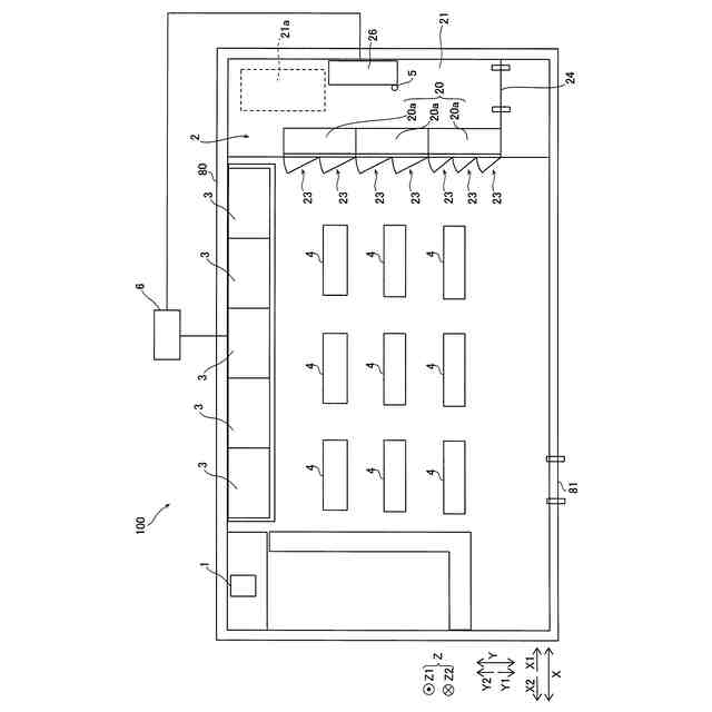 ここで、上記特許文献1に記載されているウォークインタイプのショーケース(冷却装置)は、装置内部に作業領域を有しており、作業者が内部に入って商品の陳列を行うことが可能になっている。すなわち、ウォークインタイプの冷却装置は、オープンタイプの冷却装置と比較して、冷却する領域が広い。また、上記特許文献1に記載の構成では、庫内温度センサ(温度センサ)が装置内に1つしか設けられていないため、冷却する領域が広い装置内部の温度を、温度センサの計測値と、予め設定された設定値とに基づいて制御する構成の場合、温度センサから離れた位置においては、予め設定された設定値よりも温度が高くなる場合があるという不都合がある。この場合、冷却装置内に設置する温度センサの数を増やすことにより、装置内部の任意の位置の温度に基づいて装置内部の温度制御を行うことが可能となるが、部品点数が増加するとともに、温度制御の構成が複雑化する。そこで、部品点数の増加および温度制御の構成が複雑化することを抑制しつつ、冷却装置内部の任意の位置に応じた温度制御を行うことが望まれている。