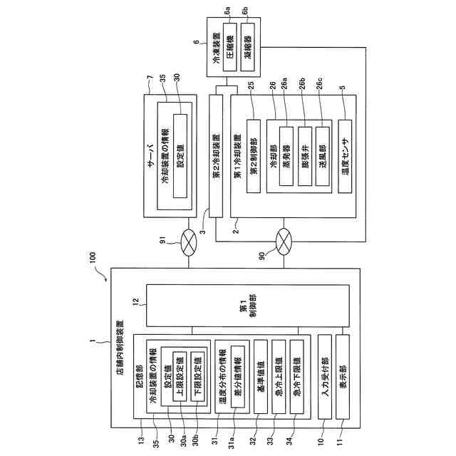 この発明は、上記のような課題を解決するためになされたものであり、この発明の1つの目的は、部品点数の増加および温度制御の構成の複雑化を抑制しつつ、装置内部の任意の位置に応じた温度制御を行うことが可能な店舗用冷却装置制御システムを提供することである。