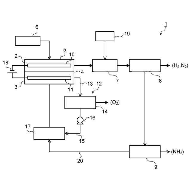 )を製造する電解装置では、窒素を還元してアンモニアを生成する還元室(陰極室)において、電解生成物であるアンモニアの製造効率や回収効率が低いことが問題となっている。例えば、還元室(陰極室)で生成されたアンモニア(NH