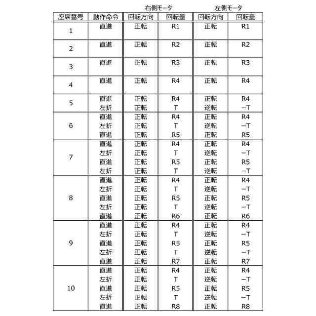 上記搬送装置のモータを制御するための制御テーブルである。