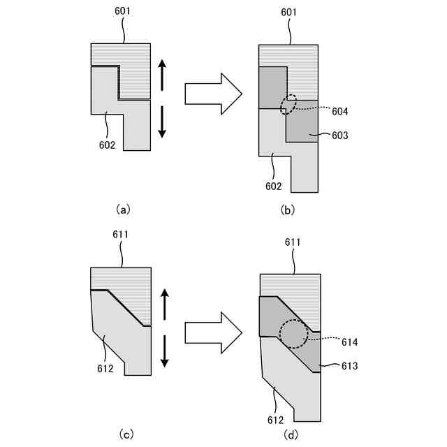 また、本発明は、例えば、単色の合成樹脂で形成される第1パーツと、多色の合成樹脂が組み合わされて形成される第2パーツとを含む模型素体の製造方法であって、第1色の合成樹脂を金型に射出して成形する一次成形工程と、前記金型の一部を固定するストッパーを解除する解除工程と、前記第1色とは異なる第2色の合成樹脂を前記金型に射出して成形する二次成形工程とを含み、前記二次成形工程による前記第2色の合成樹脂の射出圧により、前記金型の一部が所定方向に移動することにより確保された隙間に該第2色の合成樹脂が流入して前記第2パーツが成形されることを特徴とする。