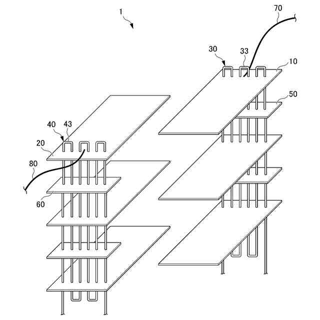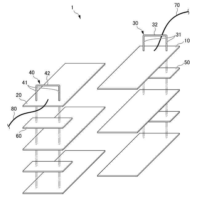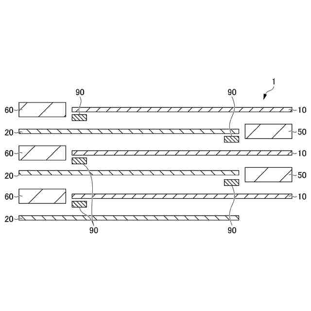 前記第1接続導体が、複数の前記第1シート部材のそれぞれの他の部分を貫通し、且つ複数の前記第1シート部材のそれぞれの前記第1電極層に接続されており、