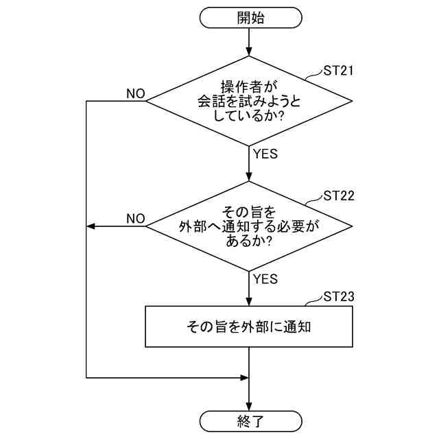 会話通知処理の流れの一例を示すフローチャートである。
