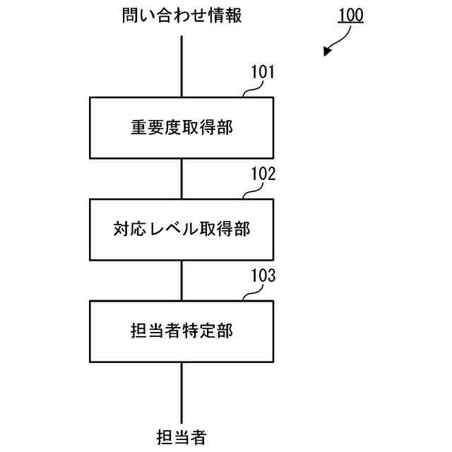 【解決手段】情報処理装置は、問い合わせ情報に含まれる問い合わせ内容の重要度であって所定の数の段階のいずれかを示す重要度を取得し、複数の担当者の技術レベルであって前記段階の数と同じ数の段階のいずれかを示す技術レベルを取得し、複数の担当者の中から、重要度が示す段階と技術レベルが示す段階との一致度が高い担当者を、問い合わせに対応する担当者として特定する。