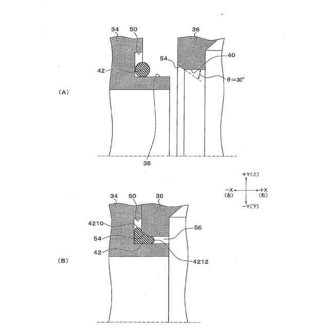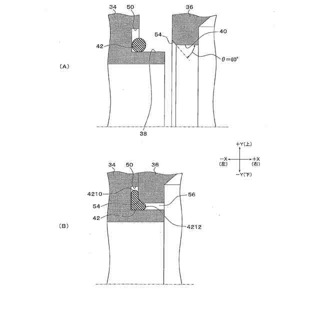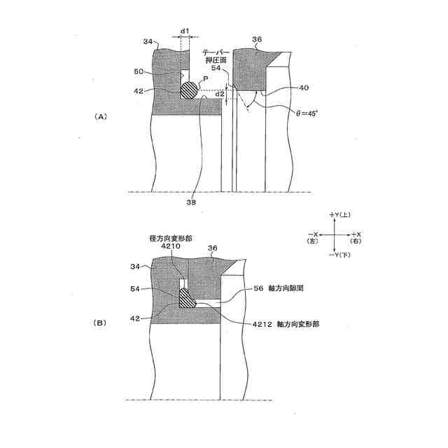 しかしながら、図11に示した従来の防水構造にあっては、第1部材100に第2部材102を締め付け固定した場合のOリング108の変形による接触面は2面であり、また図12に示したテーパー面110を設けた防水構造にあっては、Oリング108の変形による接触面は3面であり、変形したOリングには接触していない部分が残ることから、軸方向及び径方向の隙間の密閉性に限界がある。