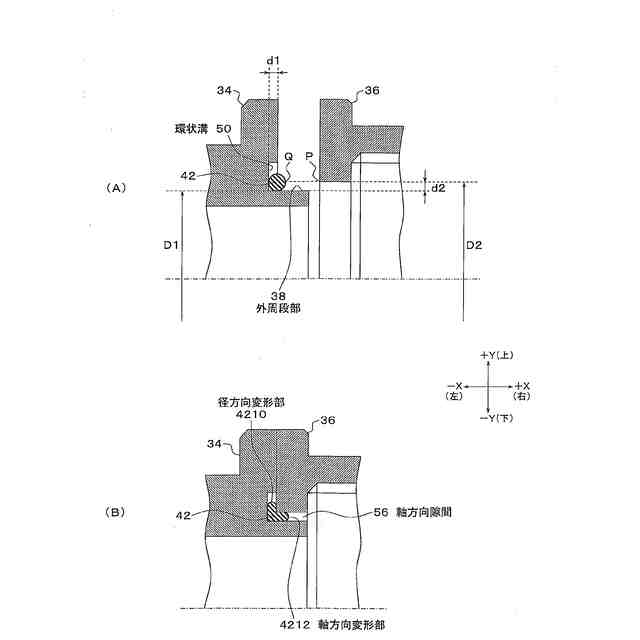 外周段部の当接面に、弾性リングの一部を収納する環状溝が形成される。