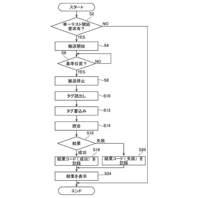 一実施形態のプリンタにおいてラベルに対する書き込みテストの処理(単一テストの場合)を示すフローチャートである。