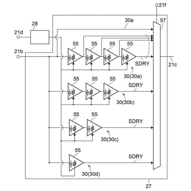 前記信号取込回路は、直列に接続されて少なくとも1つの直列接続を形成し、前記信号取込回路の前記直列接続は、前記直列接続の初段から最終段への方向に、前記信号伝搬回路の前記入力からの信号を伝搬させる伝搬ラインを形成するように構成され、