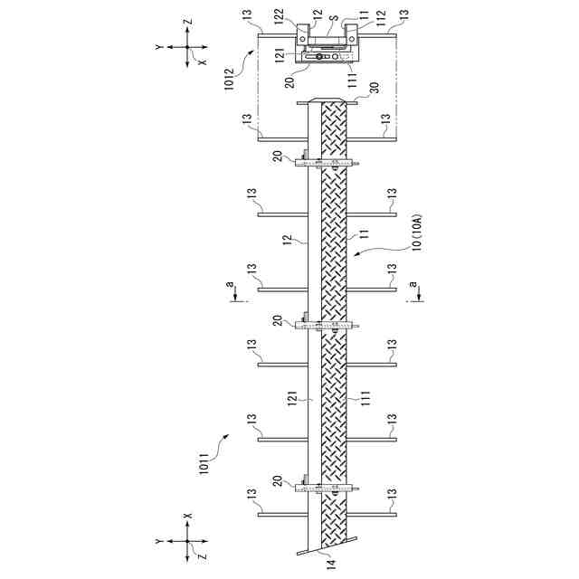 しかしながら、この取付補助具を用いて継手間の再調整を行うには、取付補助具は伸縮装置を構成する継手の相対移動方向を規制するため、取付補助具の固定方向(継手の相対移動方向を規制する方向)を、伸縮装置の伸縮方向(橋桁の伸縮方向)と精度よく合わせる必要がある。精度よく合わせていないと、継手間の再調整を行った際、伸縮装置の長手方向端部で継手間にずれが生じる。伸縮装置端部において継手間にずれがあると、橋桁の伸縮などで遊間に変動があった場合、伸縮装置の端部が地覆部などと干渉する恐れがあり、伸縮装置の動きを阻害するだけでなく、破損させてしまう可能性がある。例えば、斜角の角度が90度ではない斜橋の橋桁の遊間に伸縮装置を設置する場合、伸縮装置の設置方向(伸縮装置の長手方向)は、橋桁の伸縮方向に対して直角(90度)ではなく斜めになるため、取付補助具も伸縮装置の長手方向(伸縮装置の設置方向)に対して直角(90度)ではなく斜めに固定する必要がある。斜角の角度は橋梁によって様々であり、その角度によって伸縮装置の設置方向(橋桁の伸縮方向に対する角度)が変わるため、橋桁の伸縮方向となる伸縮装置の伸縮方向も斜角の角度によって変わる。よって、取付補助具の固定方向も斜角の角度に応じてその都度変える必要がある。つまり、取付補助具の固定作業は、伸縮装置の長手方向(伸縮装置の設置方向)に対して斜めに取付ける必要があり、伸縮装置の伸縮方向と精度よく合わせるのは難しく、伸縮装置の設置方向によって都度固定方向(その角度)が変わる(一定でない)ため、その作業は非常に煩雑となり、労力がかかる。また、施工時において現場(伸縮装置を施工する場所)の状況によって、取付補助具の固定方向と橋桁の伸縮方向とが一致しないことがあり、その場合、取付補助具の固定方向が規制されているため、取付補助具の固定方向と現況における橋桁の伸縮方向とのずれを修正することは困難である。