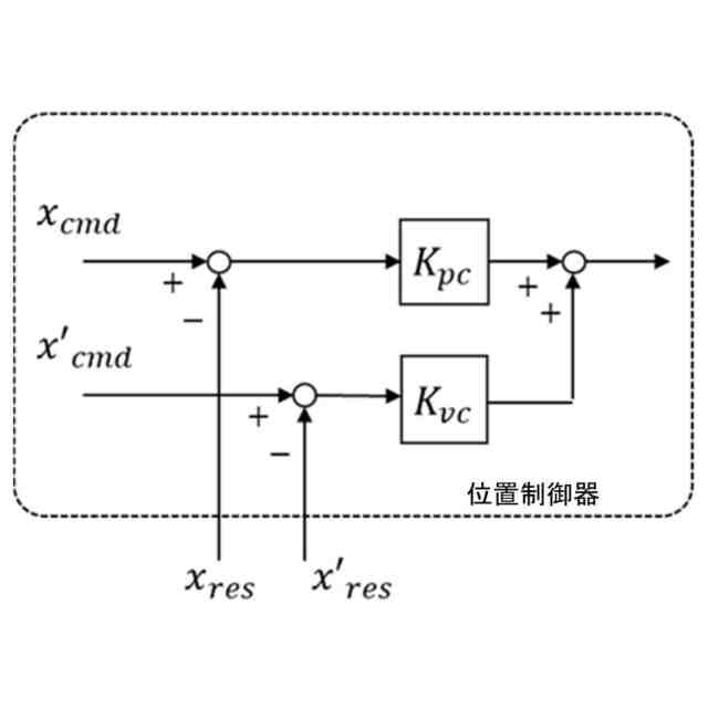 制御対象の目標位置または軌道を表す位置指令値と、当該位置指令値に応じて駆動源が発生した駆動力による制御対象の位置応答値との比較結果に基づいて、位置指令値に位置応答値が追従するために駆動源が出力すべき力参照値を計算する位置制御器と、