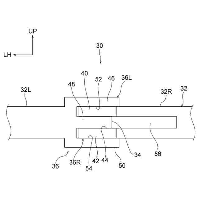 前記左側部分と前記右側部分とを回転可能に連結したヒンジ部と、