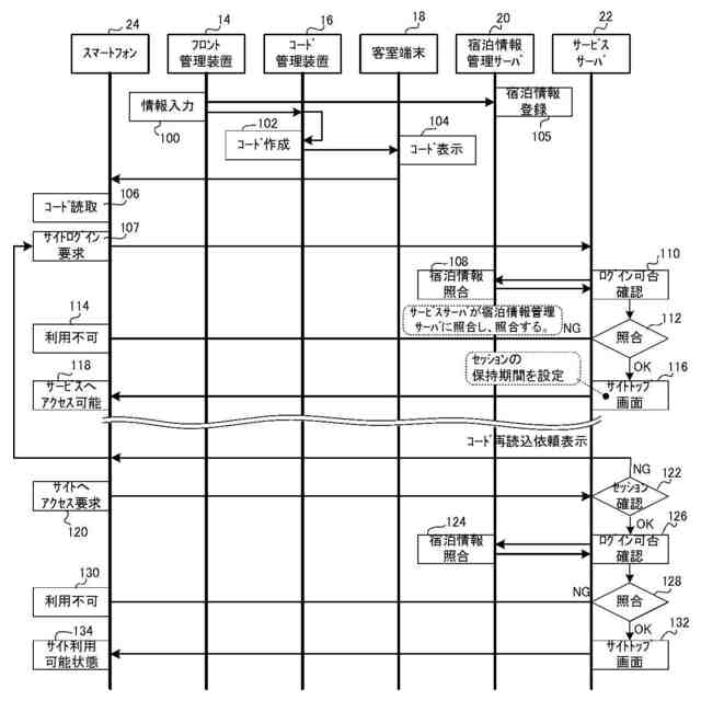 前記情報処理装置の通知に応じて、前記宿泊時サービスのサイトへのログイン要求者が、前記施設利用者と一致するか否かを前記特定情報を用いて照合する照合部を備え、
