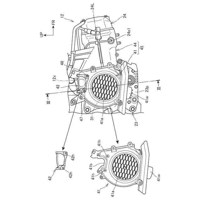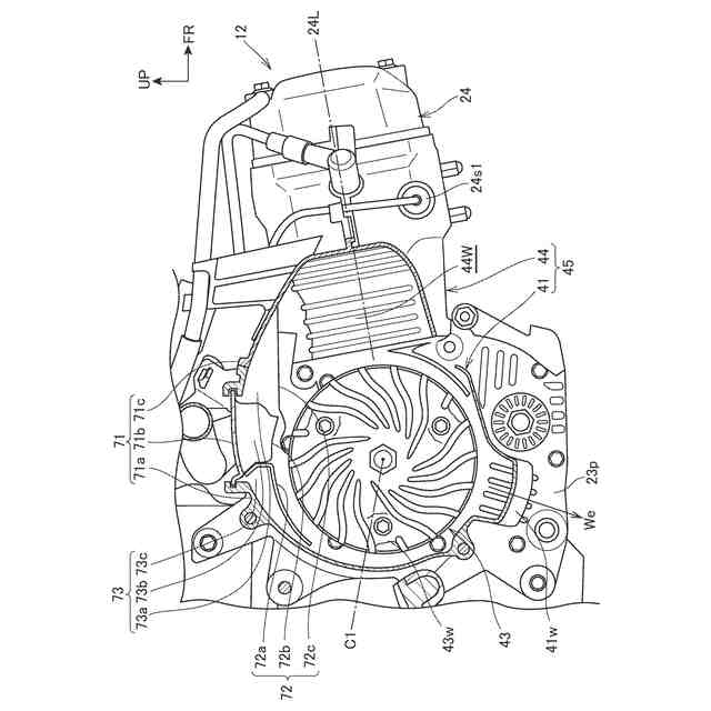 前記段部(73)は、前記クランクケース(23)と、前記キャップ部(42)と、前記ファンシュラウド(45)で構成される