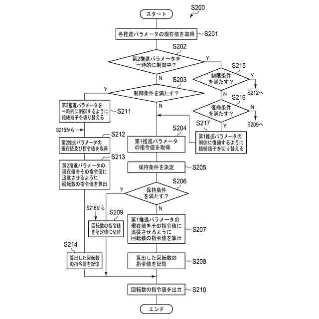 複数の前記推進パラメータの内の前記制御対象でない第2推進パラメータの現在値が上限値以上であることを含む制限条件を満たすか否かを判断する判断部と、