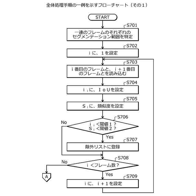 前記一連のフレームのうち経時的に連続する2つのフレームのペアごとに、当該ペアの2つのフレームのそれぞれから特定した前記領域同士の重なり度合いを表す第1指標値が第1閾値以上であるか否かを判定し、