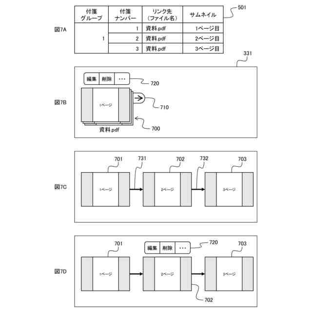 図7A~図7Dは、電子付箋の表示例を説明する図である。