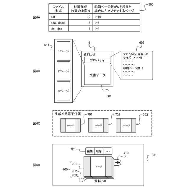 図6A~図6Dは、印刷レイアウトが複数ページの電子ファイルを付箋化する処理の具体例を説明する図である。