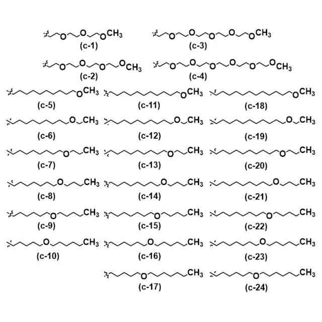 は、各々独立に、炭素数12~24の直鎖状または分岐状アルキル基、または炭素数8~16のフルオロアルキル基を表し、該直鎖状アルキル基において、1つ以上の-CH