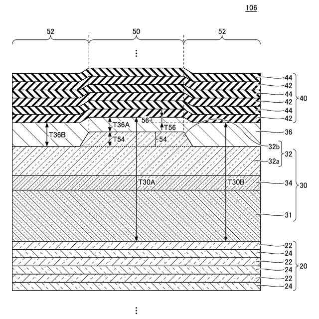 特許文献1には、凸部の上面に設けられた透明電極の厚さと、外周部の透明電極の厚さとの関係について記載されておらず、図面からは、中央部と外周部との透明電極の厚さは同じに図示されている。この場合、高次の横モードが生じる可能性がある。