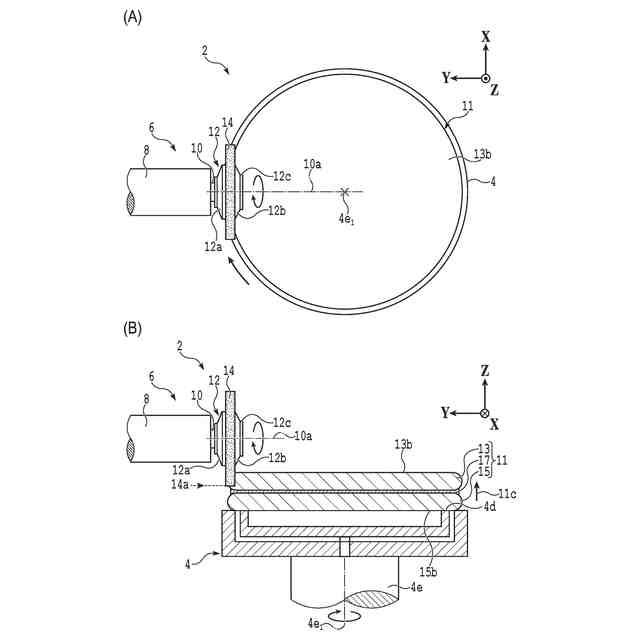 そこで、第1ウェーハのうちエッジトリミングが施された環状領域での第1ウェーハの残存領域を無くすことを目的として、切削ブレードの下端を第2ウェーハの位置まで下げることにより、第1ウェーハ及び接合層に加えて、第2ウェーハの外周部のうち接合層近傍の領域を切削することも考えられる。