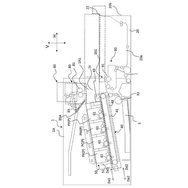 実施例1の定着装置が移動した状態のプリンタを示す図