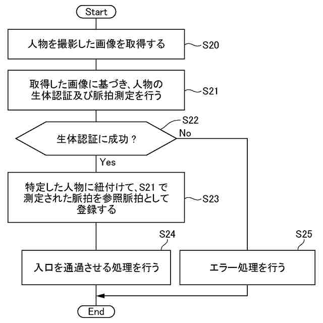 前記施設の入口で前記人物を撮影した前記画像に基づき測定された前記人物の脈拍を前記参照脈拍として登録し、