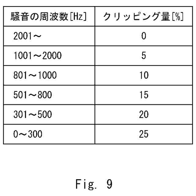 前記騒音の周波数は、平均化された音量の平均周波数または平均化された音量の平均周波数を含む所定の周波数帯域である、請求項1乃至3のいずれか1項に記載のクリッピング装置。
