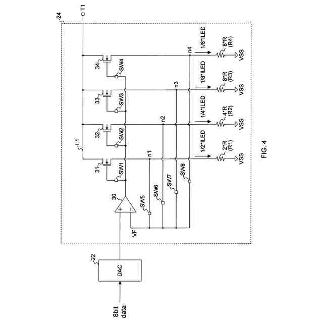 また、LED駆動電流の設定値に対するフィードバック電圧の電圧値を単純に高くすることも考えられるが、その場合はLEDを接続する端子に印加される電圧が上昇し、LED電源も高く設定しなければならないため、消費電力が大きくなってしまうという問題があった。