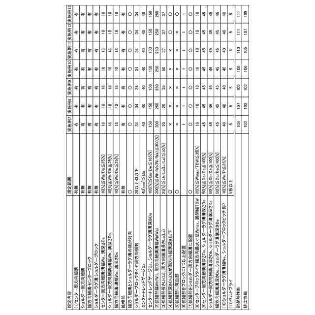 図7は、実施形態に係る空気入りタイヤの性能試験の結果を示す図表である。