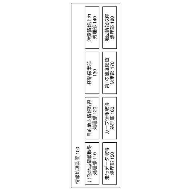 カーブの各々に対し、前記第1の速度閾値を、当該カーブの曲率半径と前記第1の曲率半径速度関係式を含む第1の情報に基づいて決定する決定部と、を有する、請求項2に記載の情報処理装置。