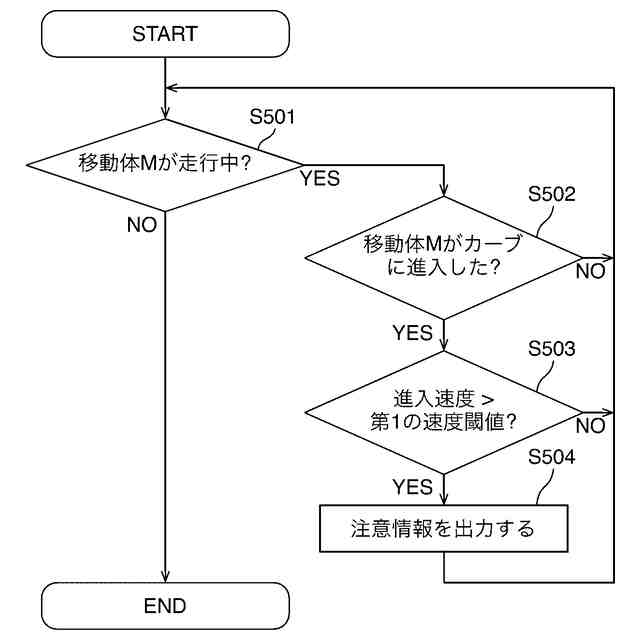 【解決手段】カーブに進入するときの移動体の速度が当該移動体の走行履歴に基づいた第1の速度閾値よりも速い場合に、当該カーブに関する注意を喚起するための注意情報を出力する。