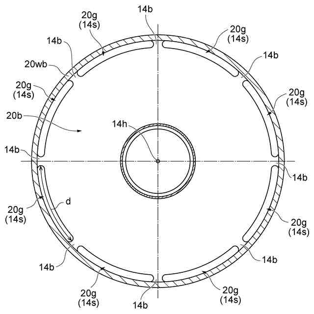 前記内周部と外周部との間で交互に折り返す層構造を有する前記導波路と、