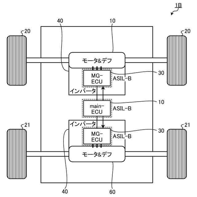 【解決手段】制御装置は、車両全体の駆動指令値を算出するmain-メインECU10と、main-メインECU10からの駆動指令値に基づきモータを制御する複数のMG-ECU30と、を備える。main-メインECU10および複数のMG-ECU30には、各々に機能安全基準において相対的に低いレベルの機能安全基準を満たすソフトウエアが格納されてなる。