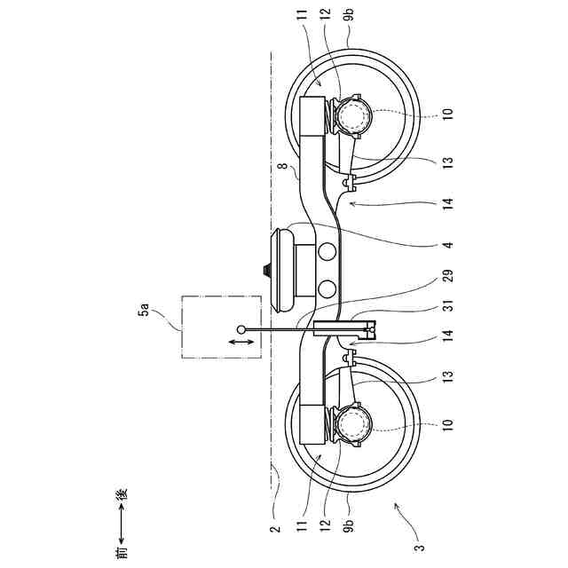 図1の鉄道車両における台車の平面図である。