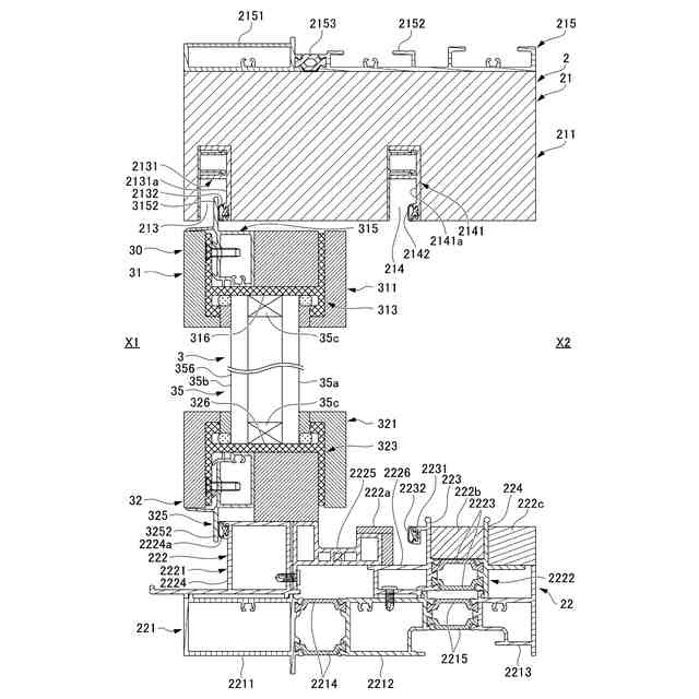 以下、本開示の実施形態について、図面を参照しながら詳しく説明する。なお、本明細書において、「見込み方向」とは、建具における室内外方向に沿う方向である。「見付け方向」とは、建具におけるガラス(面材)の面方向に沿う方向であり、見込み方向に対して直交する方向である。「見付け面」は、建具における室外側及び室内側に面するそれぞれの面を意味し、「見込み面」は、建具において室内外方向に延びる面を意味する。図面において、建具の室外側を「室外側X1」とし、建具の室内側を「室内側X2」とする。建具を正面視したときの横方向を「左右」とする。