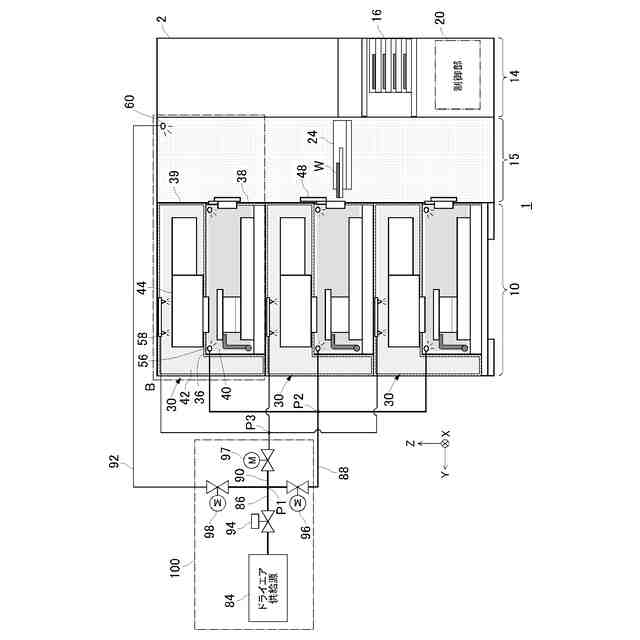 前記複数のエリアのそれぞれにドライガスを供給する供給部と、