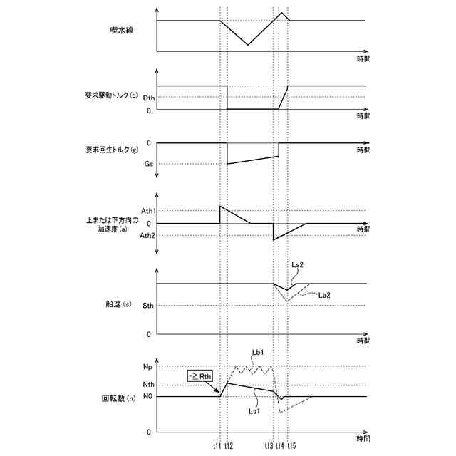 【課題】モータが回生動作を行う機会または時間を増やし、また、船舶がジャンプしたときにモータ等に悪影響が及ぶことを抑制する。