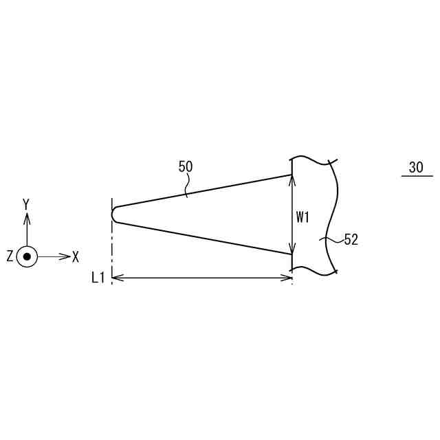 (7)上記(6)において、前記第2テーパ部の長さは5μm以上でもよい。光の損失を低減することができる。