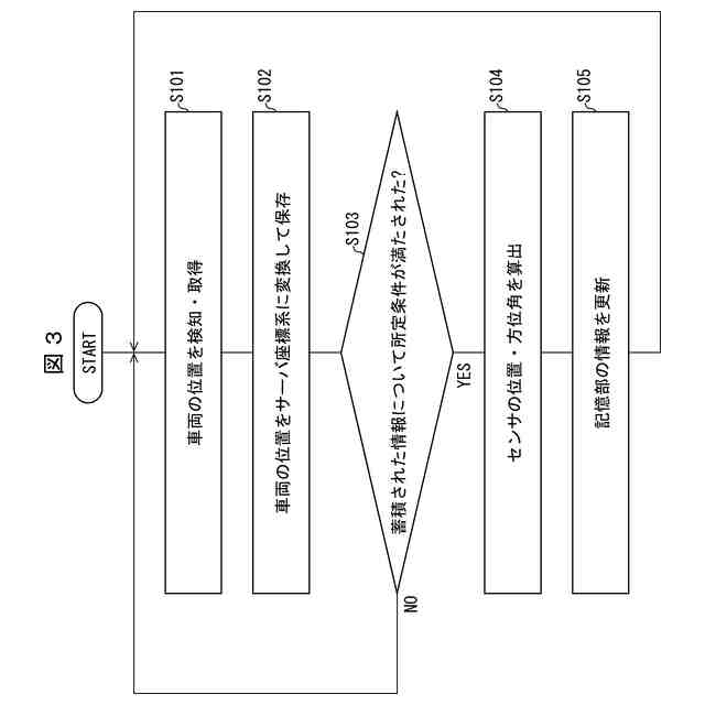 【解決手段】所定位置に設けられたセンサ(20)が検知した車両の車両位置であって、前記センサ(20)が用いる座標系であるセンサ座標系によって示される車両位置を取得する取得部(11)と、前記車両位置を、前記センサ座標系から、サーバ(1)が用いる座標系であるサーバ座標系に変換する変換部(12)と、前記サーバ座標系に変換された前記車両位置と、前記サーバ座標系における車線位置とを参照して、前記サーバ座標系における前記センサ(20)の設置位置を算出する算出部(13)とを備える。
